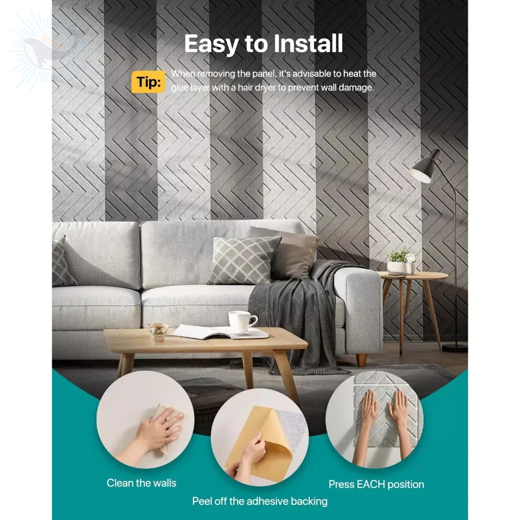 – Easy To Install: No Special Tools Or Materials Required!Our Perfect Cutting Sound Absorbing Board Can Be Connected To Various Surfaces, Before Pasting, Please Ensure That The Surface Is Clean, Dry And Dust-Free.Then, Just Tear Off The Back Protective Paper And Paste It On The Wall.