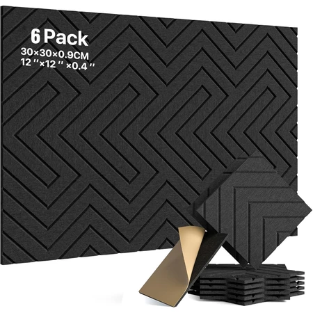 30x30CM Professional Acoustic Foam Panel Noise Reduction 6PCS Black